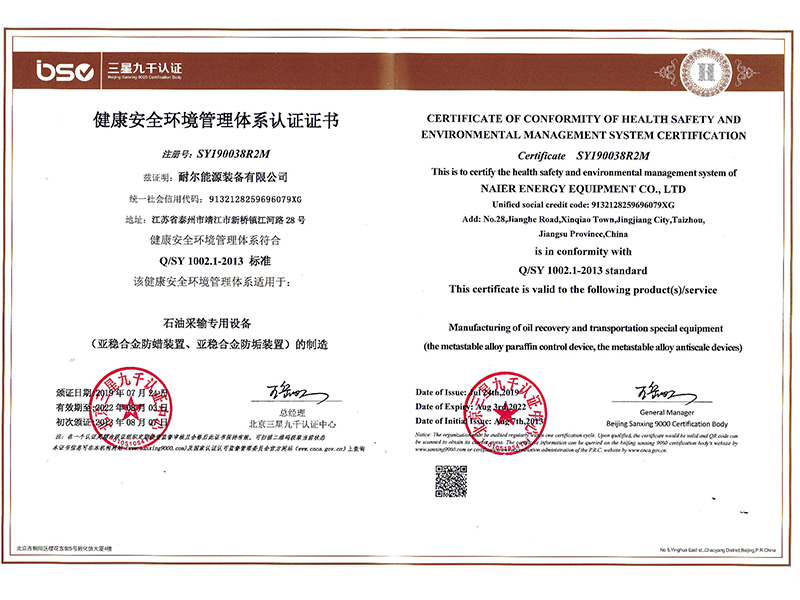 健康安全环境管理体系认证证书