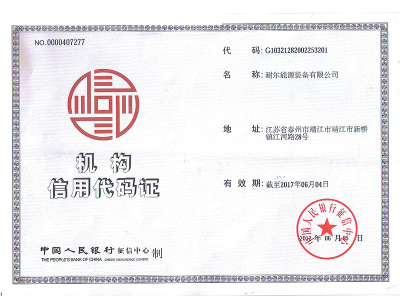 耐尔能源装备有限公司机构信用代码证